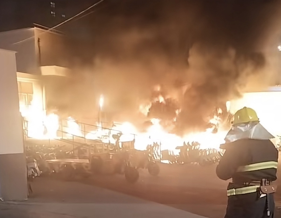 接警后,消防部门立即调派多辆消防车赶赴现场。消防队员抵达后,立即铺设水带扑救火势。大约20分钟后,现场明火被扑灭。随后,消防队员持续喷水降温。记者从消防部门了解到,火灾未造成人员伤亡。事发区域已封闭,火灾的具体原因有待调查。