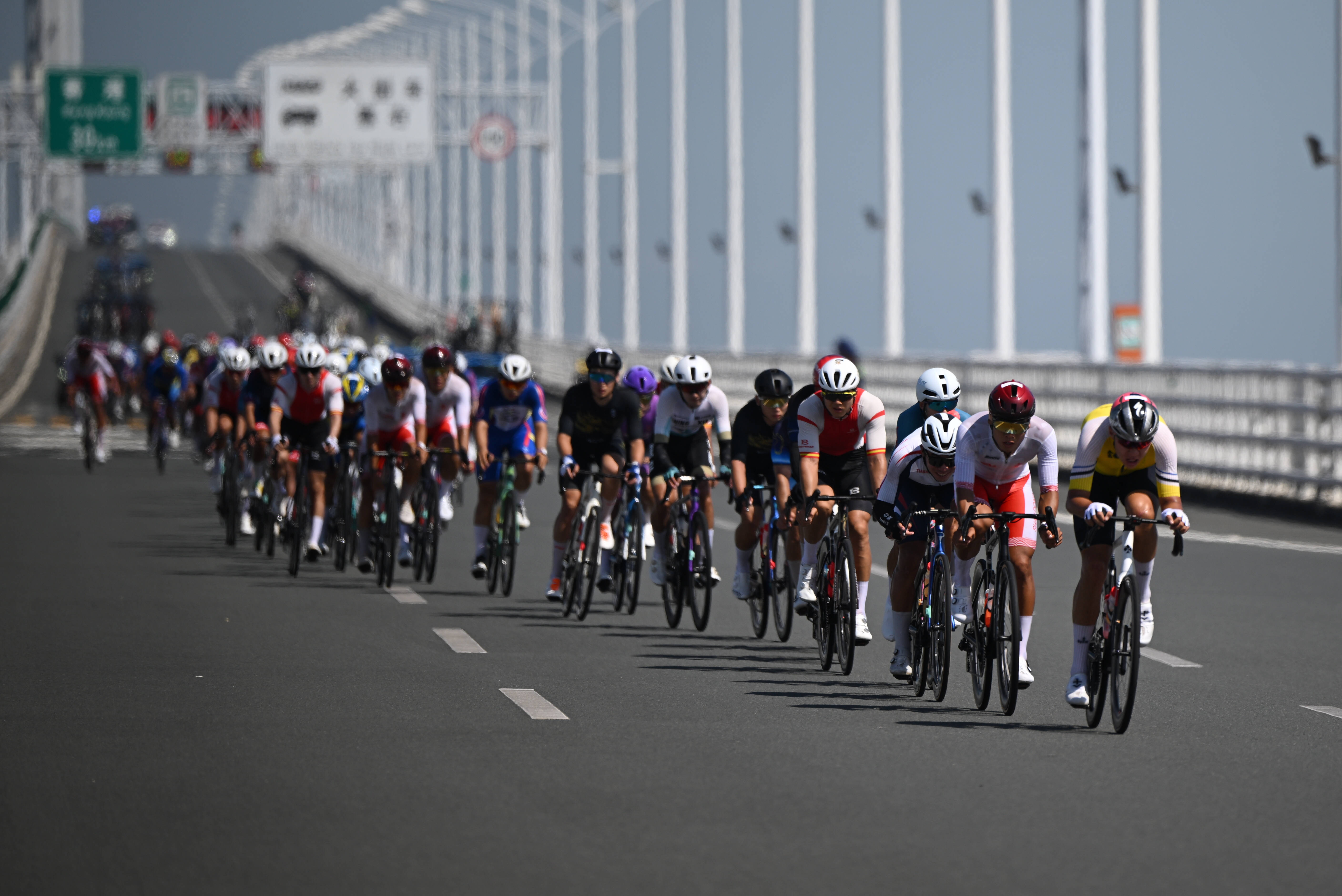 8日的港珠澳大桥上,十五运会公路自行车男子个人赛在风驰电掣中实现“一赛跨三地”。