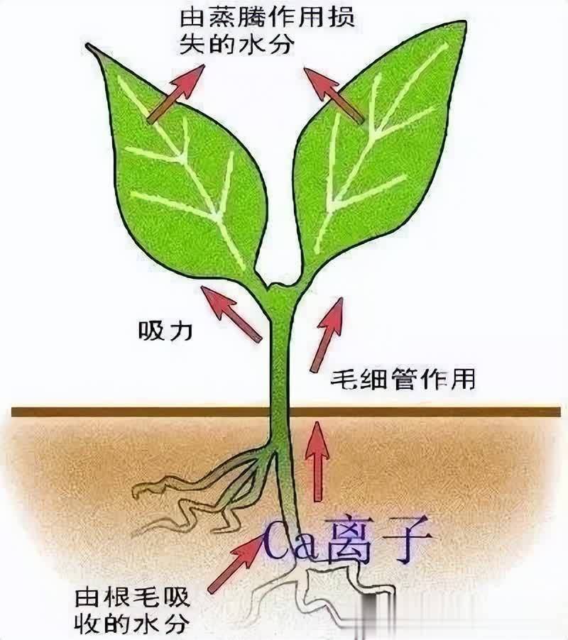 钙在植物体内的运输主要是通过木质部的导管,靠蒸腾液流的动力,运送到旺盛生长的器官,并且钙在植物体内的移动性很差,基本上不再进行二次分配利用,所以蒸腾强度越大,生长时间越长的器官,运送的钙素就越多。